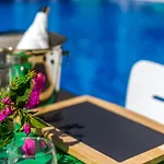 Az ingatlan úszómedencét kínál a vendégeknek a kikapcsolódáshoz.